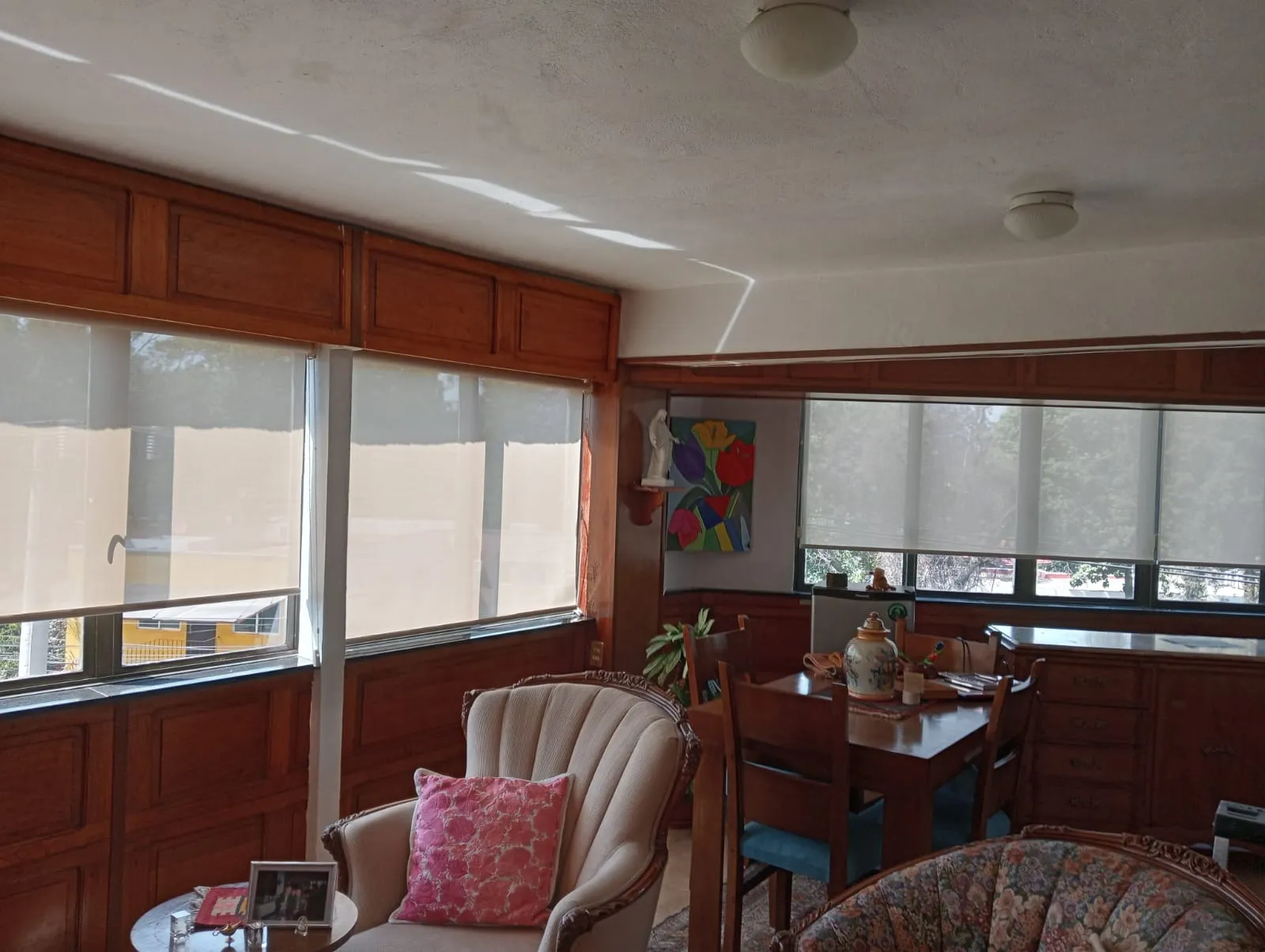 Permiten el paso de luz natural manteniendo la privacidad. Ideales para salas y comedores.